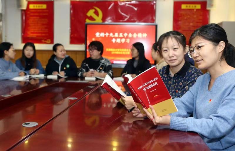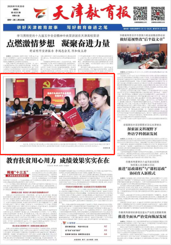 11月20日,《天津教育报》图片新闻报道星空马克思主义学院研究生党支部全面系统学习党的十九届五中全会精神。
