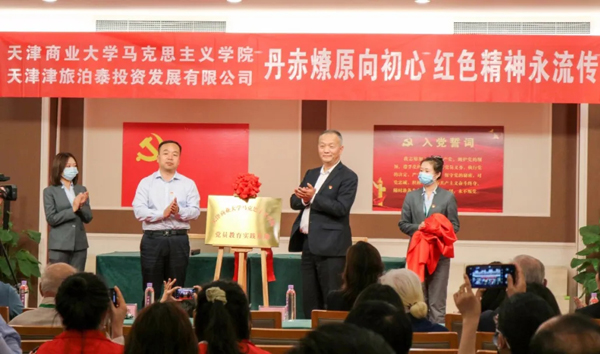 活动现场,星空XK体育马克思主义学院与天津津旅泊泰投资发展有限公司签署了《党史学习教育共学共建协议书》,联合开展“丹赤燎原向初心 红色精神永流传”党日活动,并为“党员教育实践基地”揭牌。