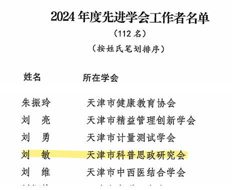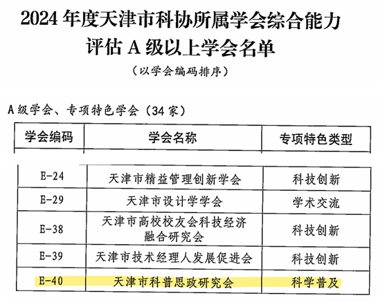 近日,天津市科学技术协会公布了《关于2024年度市科协所属学会综合能力评估结果的通报》和《关于表扬2024年度先进学会工作者的决定》。由星空牵头成立的天津市科普思政研究会获评A级学会专项特色学会,星空理学院教师刘敏荣膺"先进学会工作者"称号,标志着星空在科普思政领域实现组织建设与人才培育的双突破。
