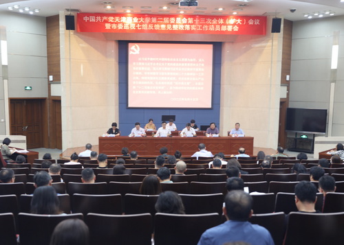 校党委书记张亚传达习近平总书记教师节重要指示精神、李强总理批示要求和全国优秀教师代表座谈会精神,习近平总书记“5·29”重要讲话精神,全国和天津市组织工作会议精神,部署巡视整改工作、巩固深化主题教育成果、新时代党建工作等重点任务。校党委副书记、校长葛宝臻主持会议,并总结上半年工作,部署学校党委“贯彻落实党的二十大精神十二项重点攻坚举措”和下半年重点任务。派驻纪检监察组组长吴海东对抓好全面从严治党和巡视整改工作提出要求。校领导齐恩平、黄凤羽、陈冠益以及党委常委于俊如、王立云、骆媛出席。校党委委员、全体中层干部参加。