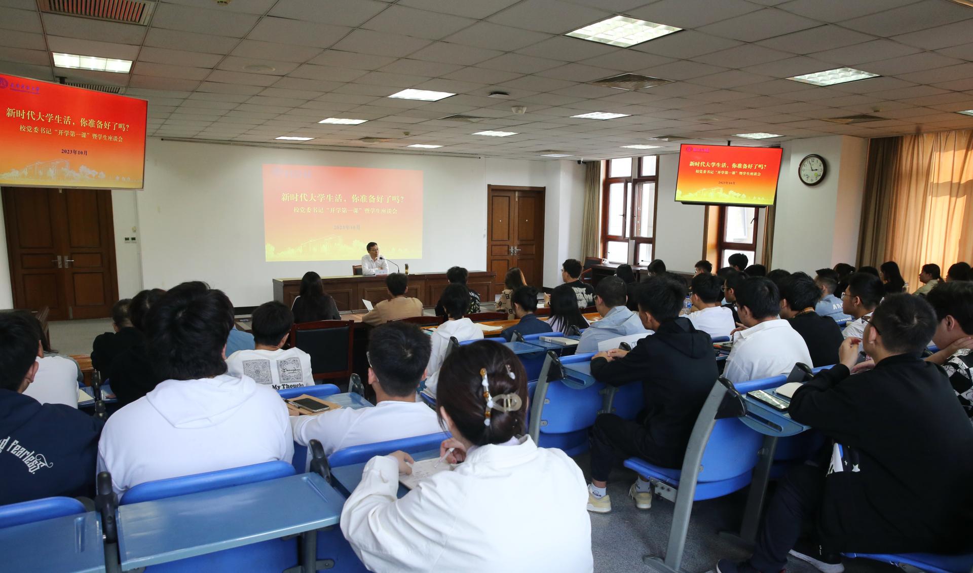 10月11日下午,2023-2024学年秋季学期校党委书记“开学第一课”暨学生座谈会在图书馆弘毅厅举行。校党委书记张亚以“新时代大学生活,你准备好了吗?”为题,为2023级新生代表讲授开学第一课。相关职能部门负责人,相关学院党委副书记、辅导员及学生代表参加。