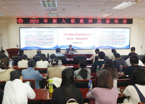 为深入学习贯彻习近平新时代中国特色社会主义思想和党的二十大精神,贯彻落实习近平总书记关于教育的重要论述,切实提高教师思想政治素质和职业道德水平,10月24日上午,2023年新入职教师岗前培训暨校长“师德必修课”在4号教学楼404教室举行。校党委副书记、校长葛宝臻以“严格遵循《十项准则》,做新时代‘四有’好教师”为题为新入职教师讲授师德必修课。人事处主要负责人主持。各学院、教学部近70位新入职教师参加。