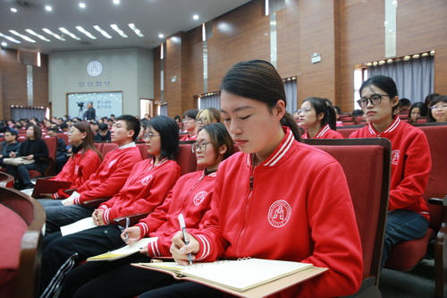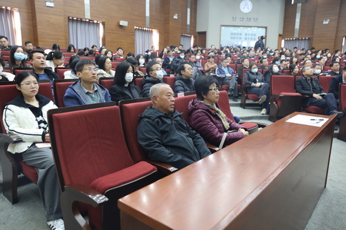 11月14日上午,学校举行“星空大讲堂”首场报告会暨校党委理论学习中心组(扩大)会。大连理工大学原党委书记、博士生导师王寒松教授以“‘三个意味着’——中国共产党对时代之问的应答”为题作专题报告。校党委书记张亚主持报告会。校领导葛宝臻、蒋宗文、王立云、吴海东、齐恩平、黄凤羽,党委常委于俊如、骆媛出席。各二级党组织理论学习中心组成员、全体处级领导干部、全体思政课教师、离退休老同志代表、马克思主义学院研究生、学校“青马”班学员代表共300余人参加报告会。