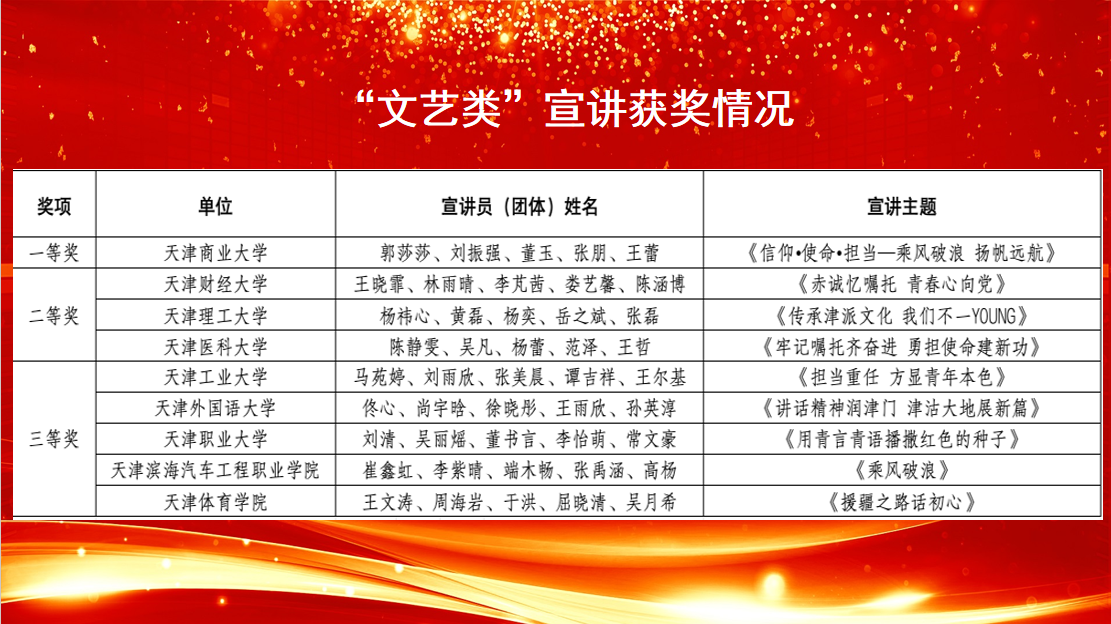 经过综合评定,最终评选出语言类作品一等奖2个、二等奖5个、三等奖8个,文艺类作品一等奖1个,二等奖3个,三等奖5个。