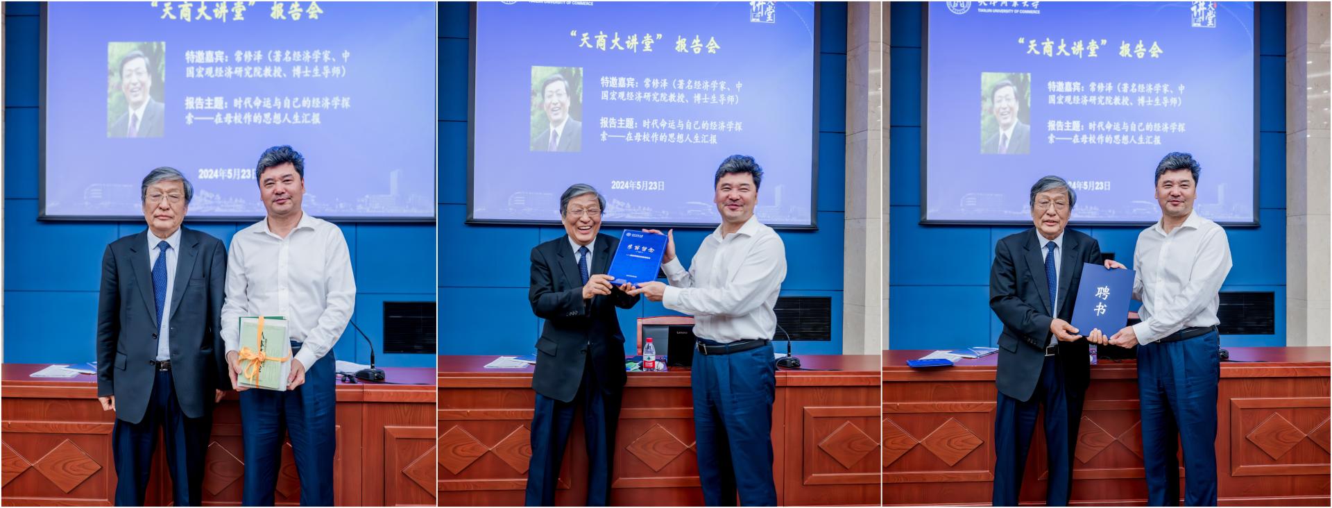 报告会前,常修泽教授向学校捐赠了部分学术著作,葛宝臻校长代表学校向常修泽教授赠送母校“学籍卡”,并为其颁发兼职教授聘书。