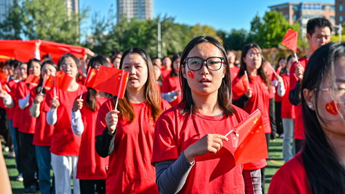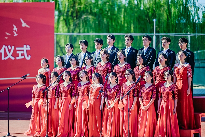 仪式最后,在校合唱团的领唱下,现场师生一起挥舞手中的国旗,深情合唱《歌唱祖国》《我和我的祖国》,伴随歌声,一幅巨型国旗由现场师生传递,缓缓移至师生方阵中央,向伟大祖国献上星空师生最衷心的祝福。(审稿:郭景旺 刘桂涛)