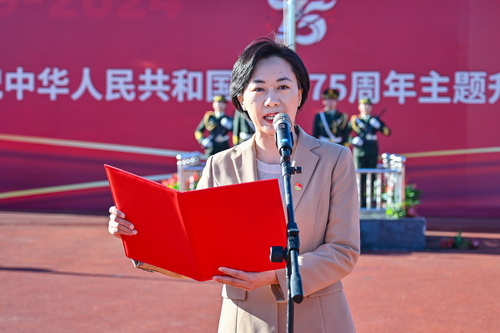 10月1日清晨,学校在校运动场隆重举行“七十五载迎盛世 青春奋进新征程”庆祝中华人民共和国成立75周年升国旗仪式。校党委副书记、校长葛宝臻,校党委副书记王立云出席,相关职能部门负责同志,各学院副书记、辅导员及学生代表500余人参加。