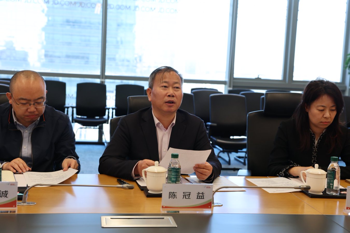 陈冠益代表学校对京东集团的热情接待表示感谢,对京东取得的成就高度赞赏,介绍了学校的基本情况以及在人才培养、学科建设、科研创新等方面取得的成绩。他表示,学校将进一步发挥优势学科带动作用,围绕集团重点业务板块,强化校企科创与人才服务能力建设,助推教育科技人才一体发展。希望双方在人才联合培养、实习就业、产学研用一体、打造导师团、建立校企联合研究中心等方面开启全面合作,不断优化人才培养模式,共同推进产教融合、校企合作。