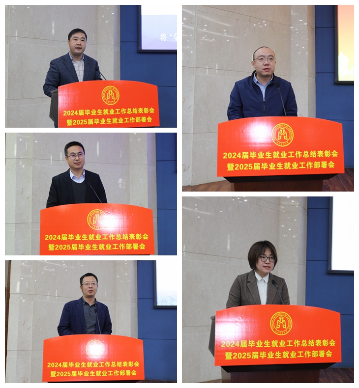 王立云传达上级就业创业会议精神并作工作部署。齐恩平宣读表彰2024年度就业工作先进集体、先进个人的决定。校领导为2024年度就业工作先进集体、先进个人颁发奖牌、证书。