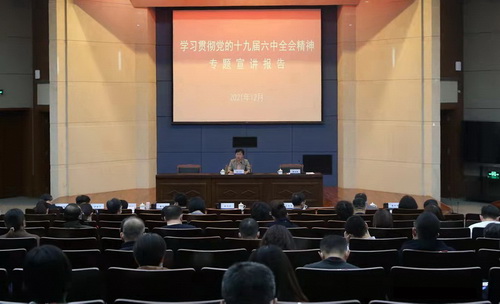 史习红从深刻认识总结党的百年奋斗重大成就和历史经验的重大意义,深刻认识党的百年奋斗的初心使命和重大成就,深刻认识中国特色社会主义进入新时代的历史性成就和历史性变革,深刻认识党的百年奋斗的历史意义和历史经验,深刻认识以史为鉴、开创未来的重要要求,从党的百年奋斗历程中汲取智慧和力量等六个方面,对六中全会精神作了全面、系统、深入的宣讲。