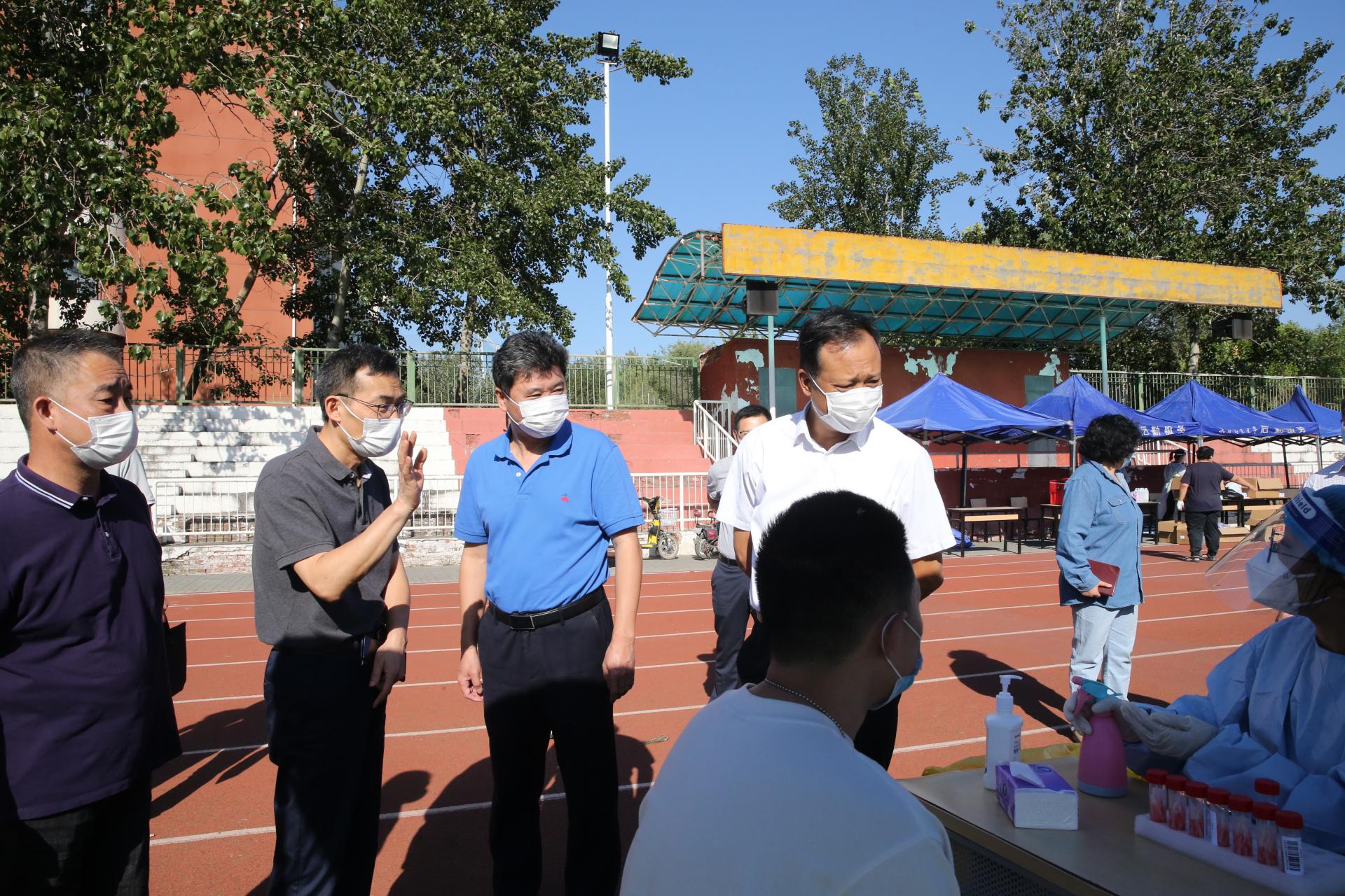 在核酸检测现场,张亚、葛宝臻与学生进行亲切交流,向正在参与核酸检测工作的教师党员志愿者表示亲切慰问,叮嘱各单位要坚持以学生为中心,强化人文关怀,以勇于担当的精神落实防控责任,切实筑牢守护师生健康的校园安全屏障。