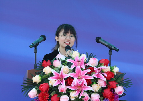 机械工程学院2020级本科生马臻、经济学院2022级本科生徐艺桐分别作为在校生代表和新生代表发言。
