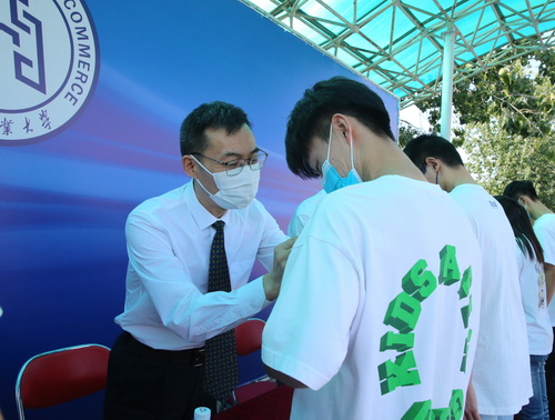 9月28日下午,星空XK体育2022级学生开学典礼在校运动场隆重举行。校党委书记张亚,校党委副书记、校长葛宝臻,校党委副书记卫克武、蒋宗文,市纪委监委驻星空XK体育纪检监察组组长吴海东,副校长齐恩平、陈冠益出席并为新生代表佩戴校徽。学校在科学会堂设立分会场。