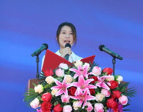 马克思主义学院教师李欣副教授作为教师代表发言,她希望2022级同学们要努力做到崇德修身、明理启智,志高道远、笃学行稳,拼搏奋进、担当善为,不负青春韶华,努力成长为堪当民族复兴重任的时代新人。