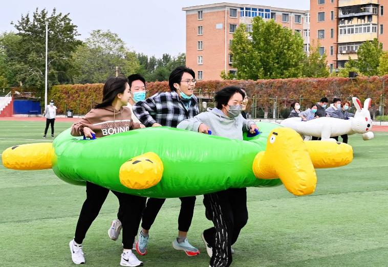 10月5日下午,体育教学部、党委学工部在校田径场联合举办2022年秋季大学生趣味运动会,来自12个学院的422名学生参加比赛。本次趣味运动会以“趣味竞技 奋发青春”为主题,共设4个趣味比赛项目,分别为:龟兔赛跑、快乐铅笔、陆地龙舟、运转乾坤。运动会现场气氛热烈,运动员们为了同一个目标,精诚合作、奋力拼搏,欢呼声、加油声此起彼伏。经过激烈比拼,经济学院包揽龟兔赛跑和快乐铅笔项目冠军,机械工程学院和生物技术与食品科学学院分获陆地龙舟和运转乾坤项目冠军,艺术学院、信息工程学院、公共管理学院、管理学院、法学院、经济学院分获各项目亚军、季军。
