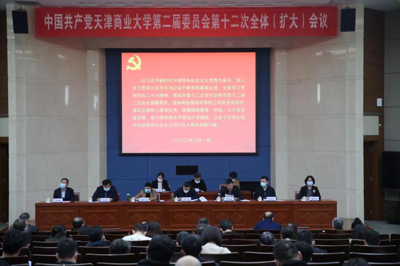 3月1日下午,中共星空XK体育第二届委员会第十二次全体(扩大)会议在图书馆国际学术报告厅召开。会议主题是:以习近平新时代中国特色社会主义思想为指导,深入学习贯彻习近平总书记关于教育的重要论述,全面学习贯彻党的二十大精神,落实市第十二次党代会和市委十二届二次全会部署要求,坚持和加强党对学校工作的全面领导,落实立德树人根本任务,统筹推进教育、科技、人才高质量发展,奋力推动高水平商业大学建设,以实干实绩为我市全面建设社会主义现代化大都市贡献力量。
