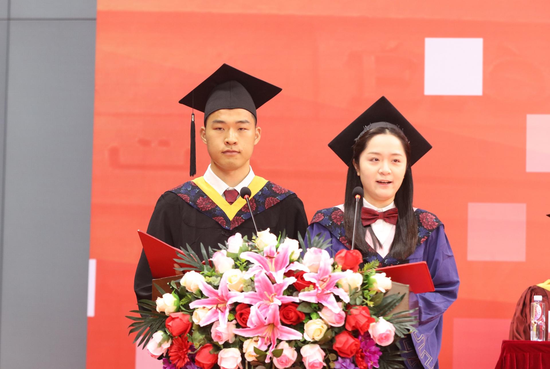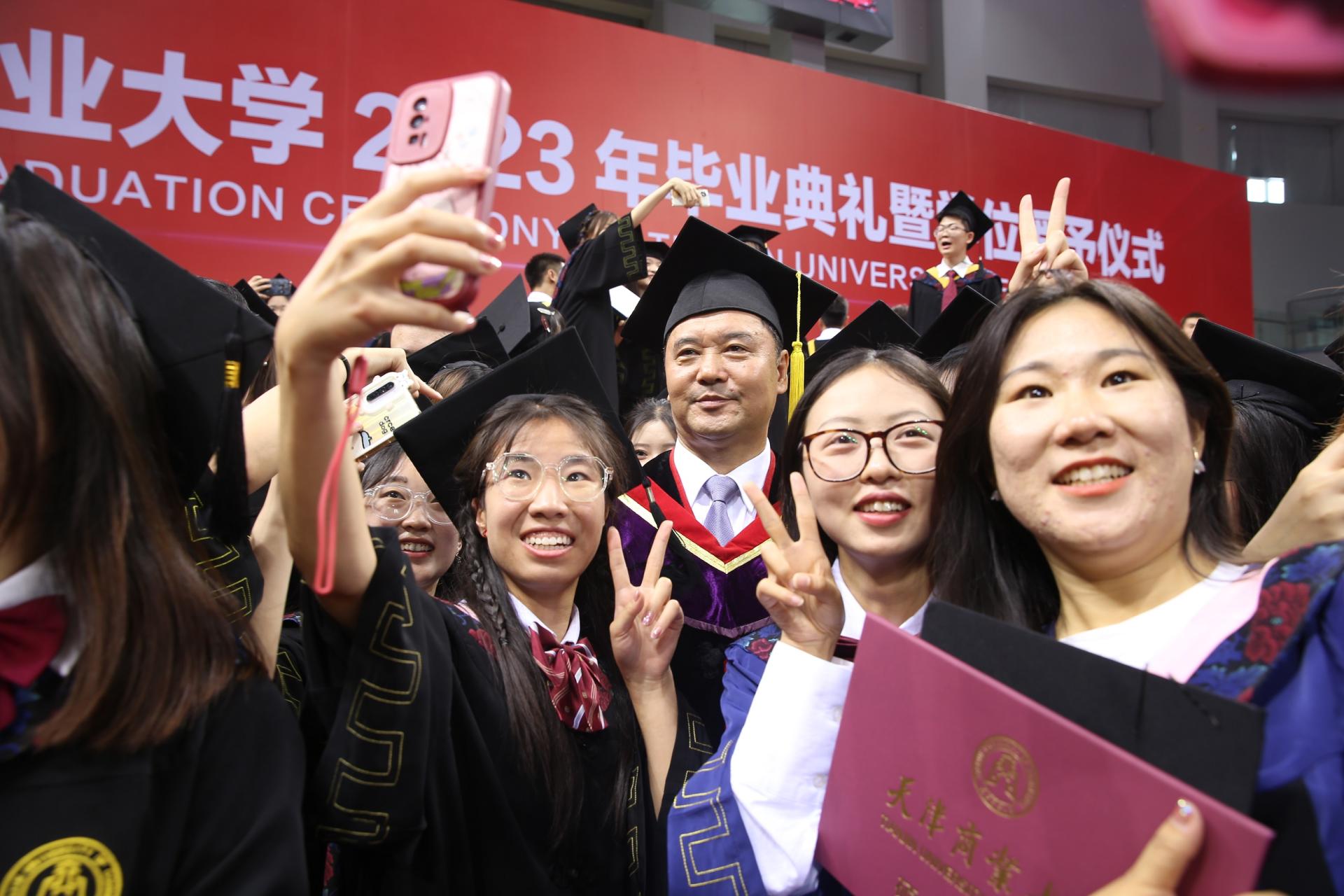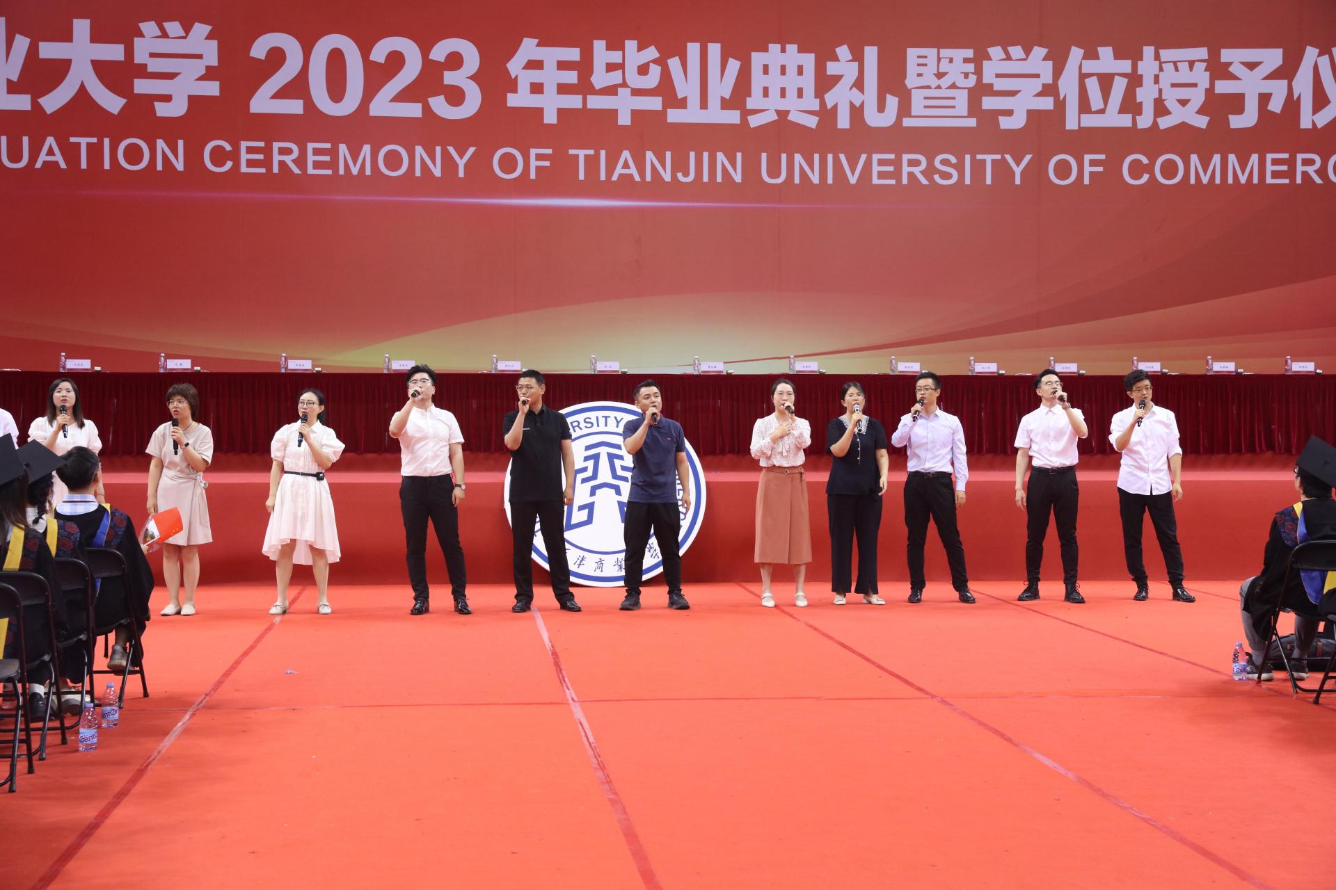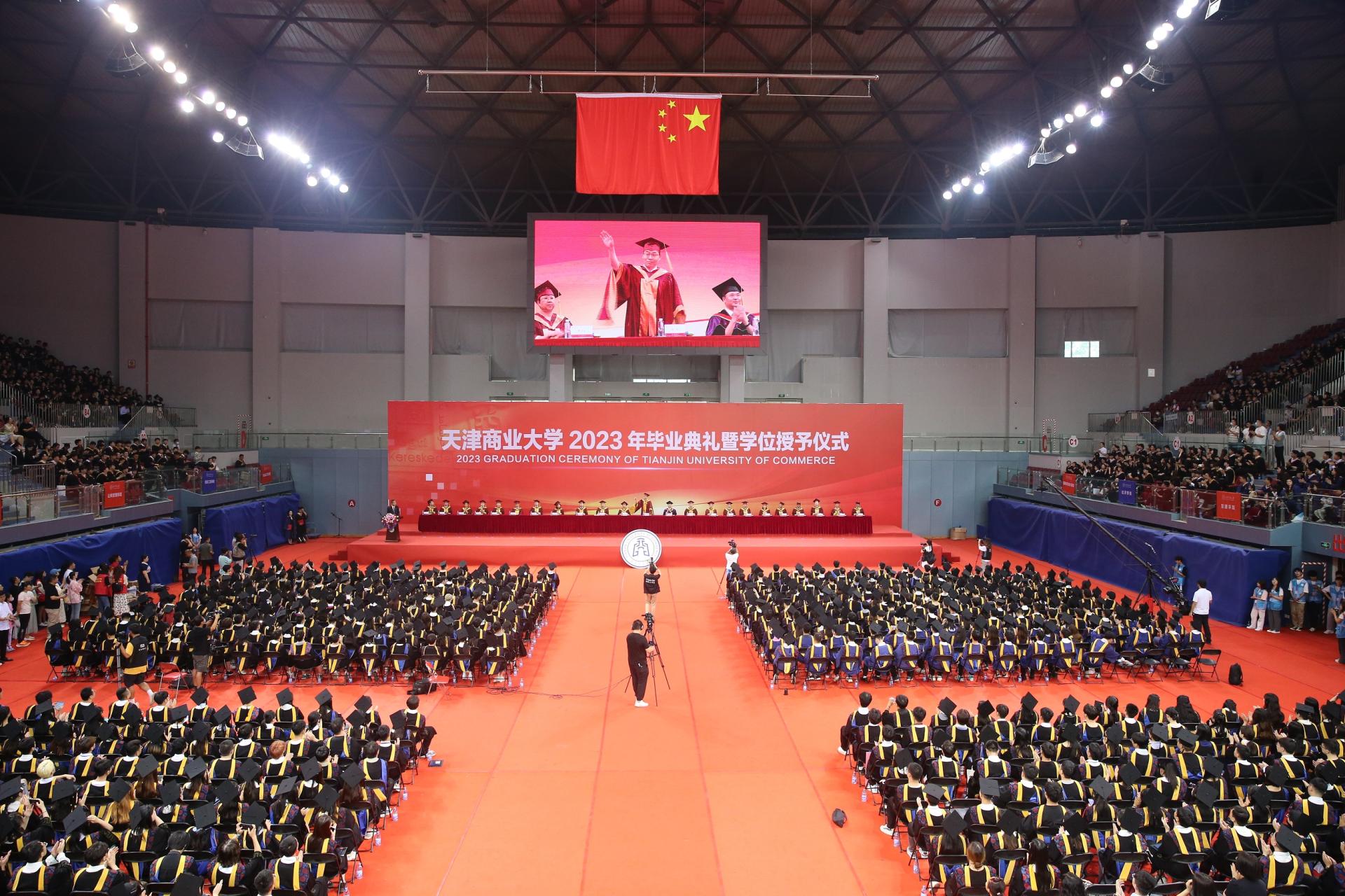 齐恩平代表校学位评定委员会宣读2023届毕业生毕业及授予学位的决定。天津市第五批“青马工程”学员公共管理学院硕士毕业生胡心屿,保送天津大学的管理学院本科生毕业生吕帆代表2023届毕业生发言,分享了各自在大学阶段的收获,抒发了对母校的眷恋以及对师长、同窗的感激之情。经济学院2012届本科毕业生,天津伍创电子商务有限公司董事长李富民作为校友代表分享了自身创业历程,勉励毕业生面对困难,要保持韧性和弹性,坚持不懈,久久为功。