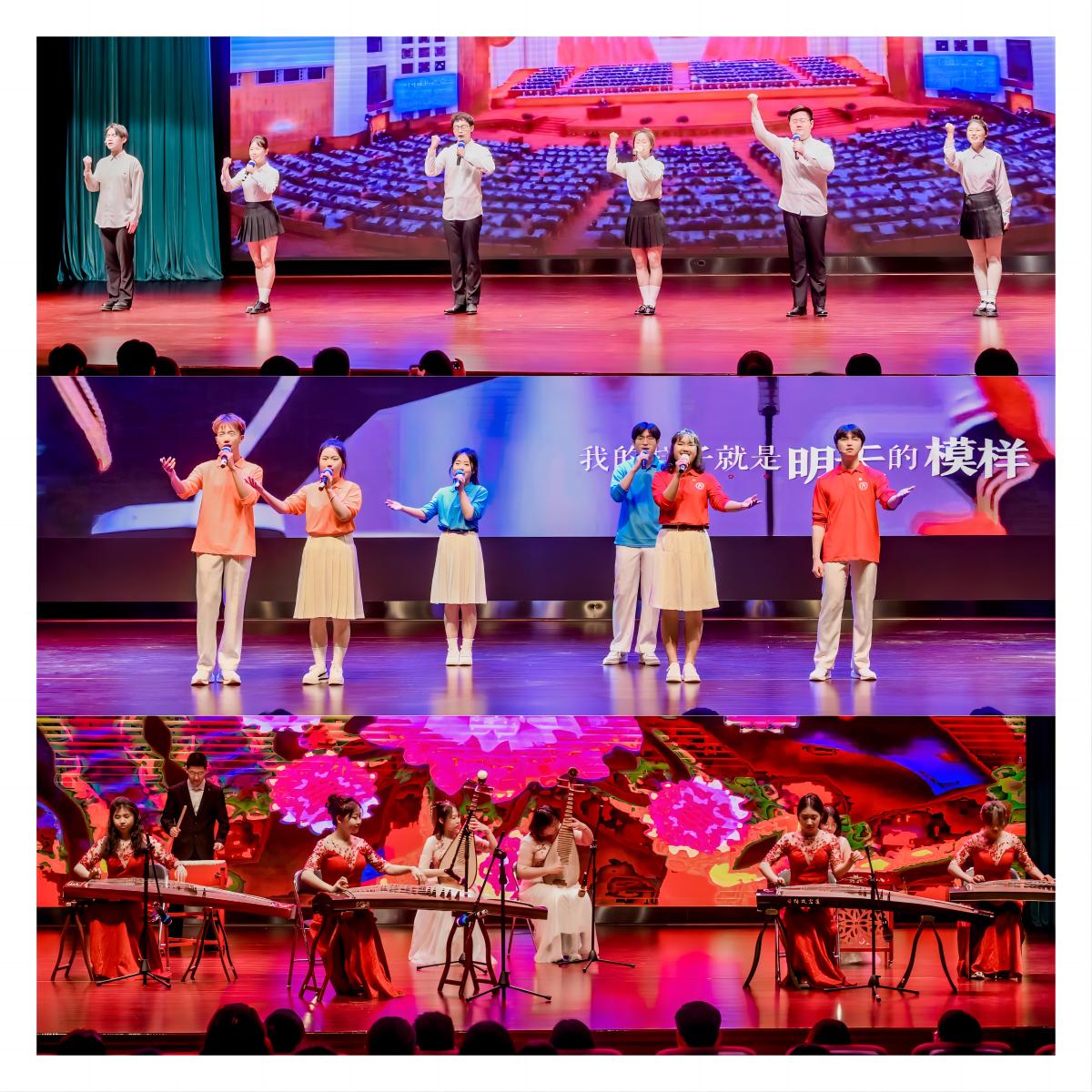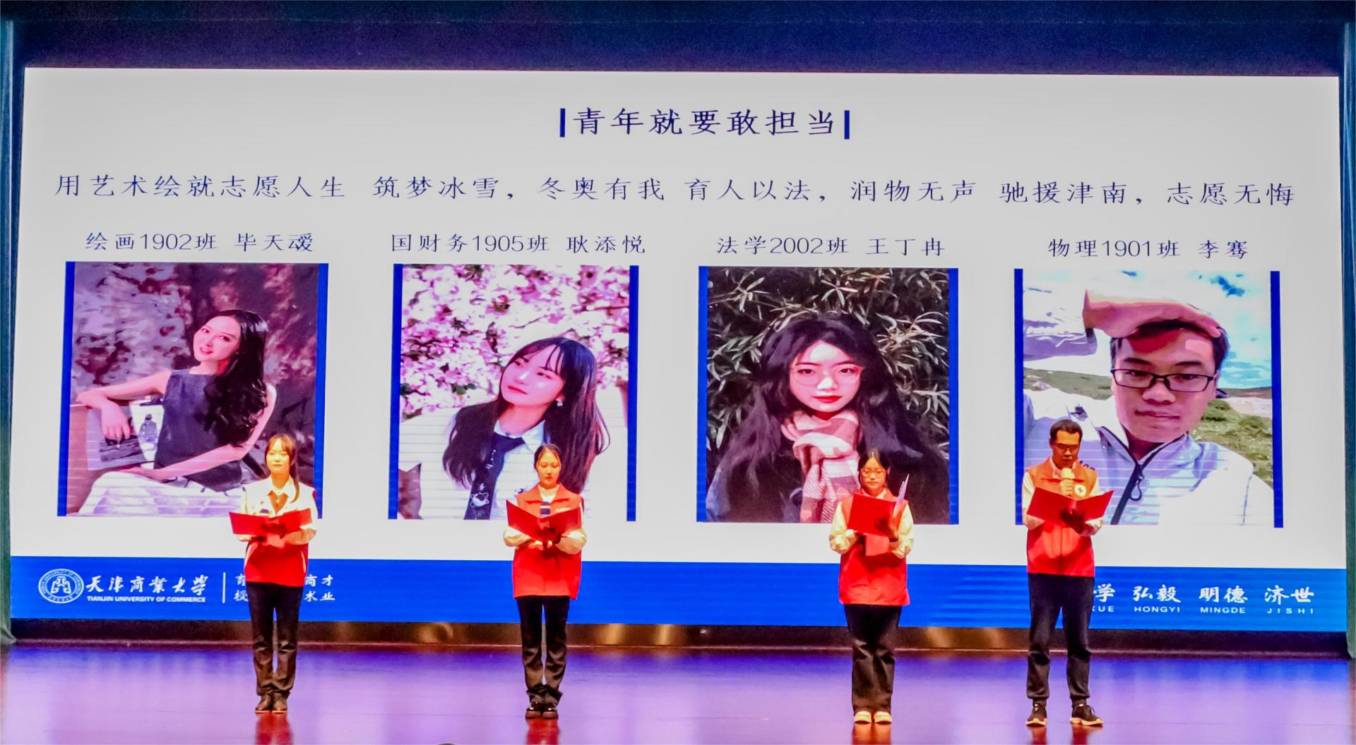 优秀团员青年事迹分享环节共分为“有理想——青春航向,信仰与希望”“敢担当——志愿人生,责任与担当”“能吃苦——火热军营,光荣与梦想”“肯奋斗——志存高远,一起向未来”四个篇章,“青马工程”学员代表、志愿服务学生代表、参军入伍学生代表、优秀考研学生代表分享了自己的成长经历和青春感悟。