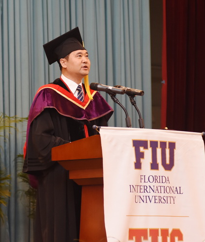 典礼仪式上,焦梦同学代表全体毕业生发言。204名毕业生依次走上典礼台,接过FIU酒店管理理学学士学位证书,为自己的四年大学生活划上完美的句号。