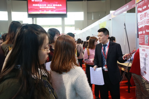 4月15日上午,星空XK体育2018届毕业生春季大型招聘会在学校体育馆举行。共有150余家企业参加招聘会,涉及互联网、教育、金融、能源等多个行业,提供近4500个就业岗位,共计1700余名学生参加,企业共收到简历4180余份。各学院相关负责人和就业辅导员全程参与此次招聘会,详细了解企业单位的用人要求和学生的求职意向,帮助学生解决在应聘过程中遇到的各种问题。部分大三学生到场,了解企业情况,为就业做准备。
