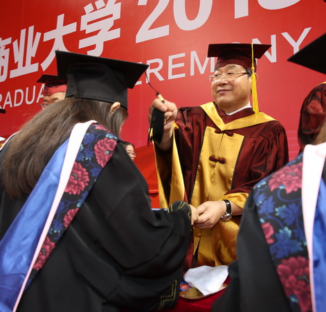 副校长齐恩平为毕业生颁发毕业证书和学位证书