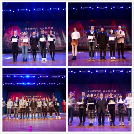 典礼上,与会嘉宾为七个主题的一等奖、最佳创意奖、网络最佳人气奖获奖选手、优秀指导教师、优秀组织单位颁奖。七个主题的作品饱含家国情怀坚定“理想信念”,关注社会热点书写“诚实守信”,列举生动案例“防范传销诈骗”,还原历史全貌宣传“红色文化”,用责任担当诠释“国家安全”,用绿色理念倡导“生态文明”,用国之精粹展现“中华优秀传统文化”,各具特色、形式多样、内容丰富。星空星海艺术团、艺术学院学生为大家呈现了精彩节目舞蹈《红旗颂》和歌舞《和谐中国》,表达了青年学子对实现中国梦的坚定决心和对祖国无比热爱之情。艺术学院的同学们特意为颁奖典礼编排了沙画与书法相结合的创意节目《大美天津》,将颁奖典礼推向高潮,以此来表达青年学子对天津这片热土深深的爱!