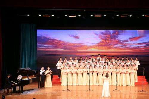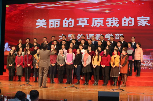 大学外语教学部和体育教学部参赛队伍演唱《美丽的草原我的家》