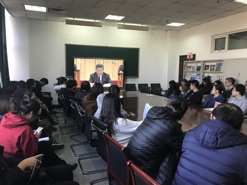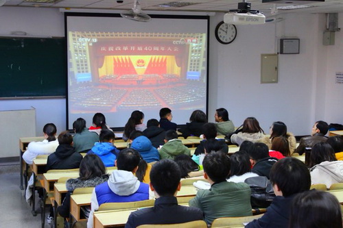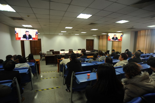 12月18日上午,庆祝改革开放40周年大会在人民大会堂举行。校领导史习红、葛宝臻、卫克武、邱立成、齐恩平、李炜在学校第一会议室同机关干部一起收看了大会实况直播。按照学校党委统一部署,各二级单位党组织、各部门也通过收看电视直播、网络直播等形式,精心组织广大师生收听收看大会盛况,第一时间及时准确了解大会精神。