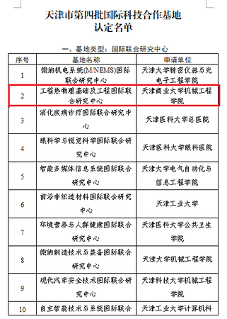 近日,天津市科技局印发《关于认定天津市第四批国际科技合作基地的通知》,机械工程学院申报的工程热物理基础及工程国际联合研究中心和生物技术与食品科学学院申报的食品科学与工程国际联合研究中心获批。