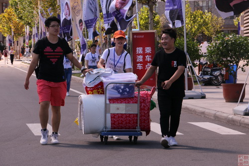 学校今年首次将迎新场地设在主体育馆内,清凉整洁的馆内环境,井然有序的报到现场,是学校给2018级新生的第一印象。在体育馆内外布置的大量立体字雕塑和留念背板,吸引了许多学生和家长驻足留影。馆内设置了新生报到区、家长休息区、综合服务区等专门区域,保证新生高效流畅办理报到手续。首次引入人脸识别系统,高效快速引导分流新生前往学院迎新位置。安排了校内摆渡车不间歇运送新生到宿舍办理入住,摆渡车上志愿者细致全面地向新生和家长介绍学校情况,帮助新生第一时间认识了解星空。各学院领导、辅导员、新生班主任深入走访新生宿舍,帮助新生尽快适应大学集体生活。