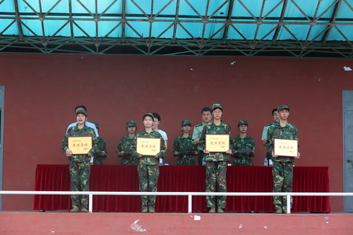 出席领导为军训先进集体和优秀个人代表颁发奖牌和证书