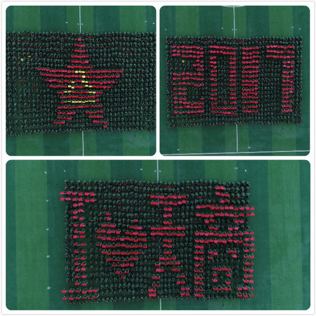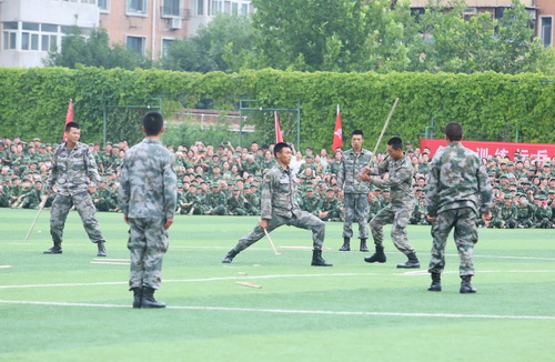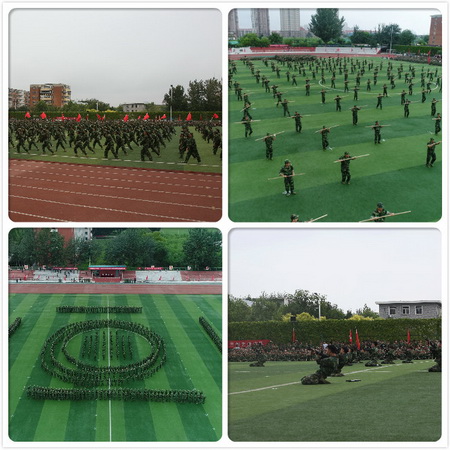 在雄庄嘹亮的国歌声中,五星红旗冉冉升起,正式拉开了汇报表演的序幕。分列式阶段,旗手昂首挺胸,标兵英姿飒爽,学员步伐整齐划一,以嘹亮的口号、严整的军姿走过检阅台。军体拳、匕首操、手语操、棍术操、格斗术等汇报表演方阵精彩纷呈。800人组成的手语操方阵依次拼写出国旗、“2017”、“66058”、“笃学、弘毅、明德、济世、富国、强军、爱党、爱国、励志、求真、力行”等字样。压轴出场的模拟对抗演练凸显体验式军训效果,承训教官摔擒、抗击打表演淋漓尽致展现军人风采。