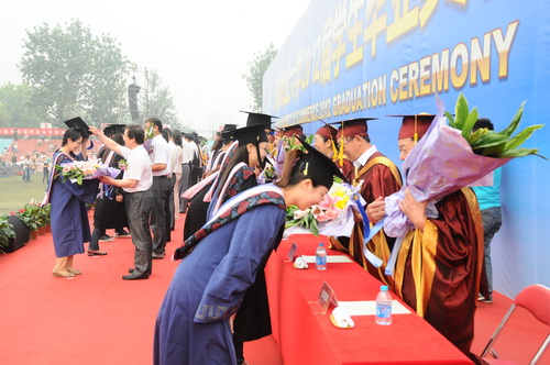 毕业生向优秀教师代表献花
