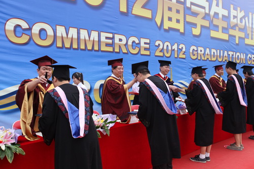 校长刘书瀚为2012届毕业生颁发毕业证学位证并拨流苏