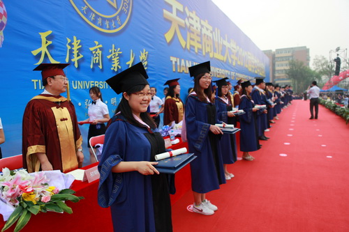校党委副书记史习红为2012届毕业生颁发毕业证学位证并拨流苏