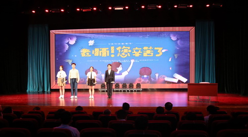 老中青三代教师携手带来诗朗诵《当我成了你》诠释了教师的追梦、奋发与担当,将家国情怀融入到自己的教育事业中,誓做笃学敏思、弘毅图强、明德济世的星空人。新入职教师合唱《最初的心 最美的梦》彰显新教师的青春活力,坚定教书育人之初心,切实担当起为党育人、为国育才的光荣使命。学生献上《夜空中最亮的星》《鲜花祝福你》,表达对全体教师的节日祝福。表彰大会在《最美的你》的歌声中落下帷幕。
