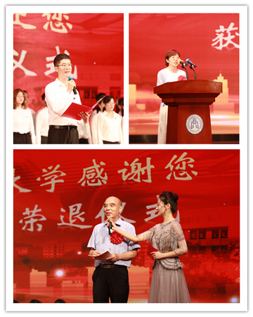 校领导为退休教师教职工颁发纪念品