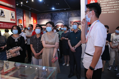 7月14日下午,读书班赴天津博物馆“红色记忆—天津革命文物展”参观学习。展览分为“开天辟地”“奠基立业”“富国裕民”“复兴伟业”四个部分,千余件文物展品、文献史料、图片视频,全景展示了中国共产党领导天津人民走过的波澜壮阔的奋斗历程、我市在不同历史时期特别是党的十八大以来取得的光辉业绩和宝贵经验、百年津沽大地涌现出的革命先辈和英雄模范。在讲解员的带领下,大家仔细聆听,不时驻足观看,深切感受百年党史中留下的革命印记,接受革命文化和红色精神洗礼。