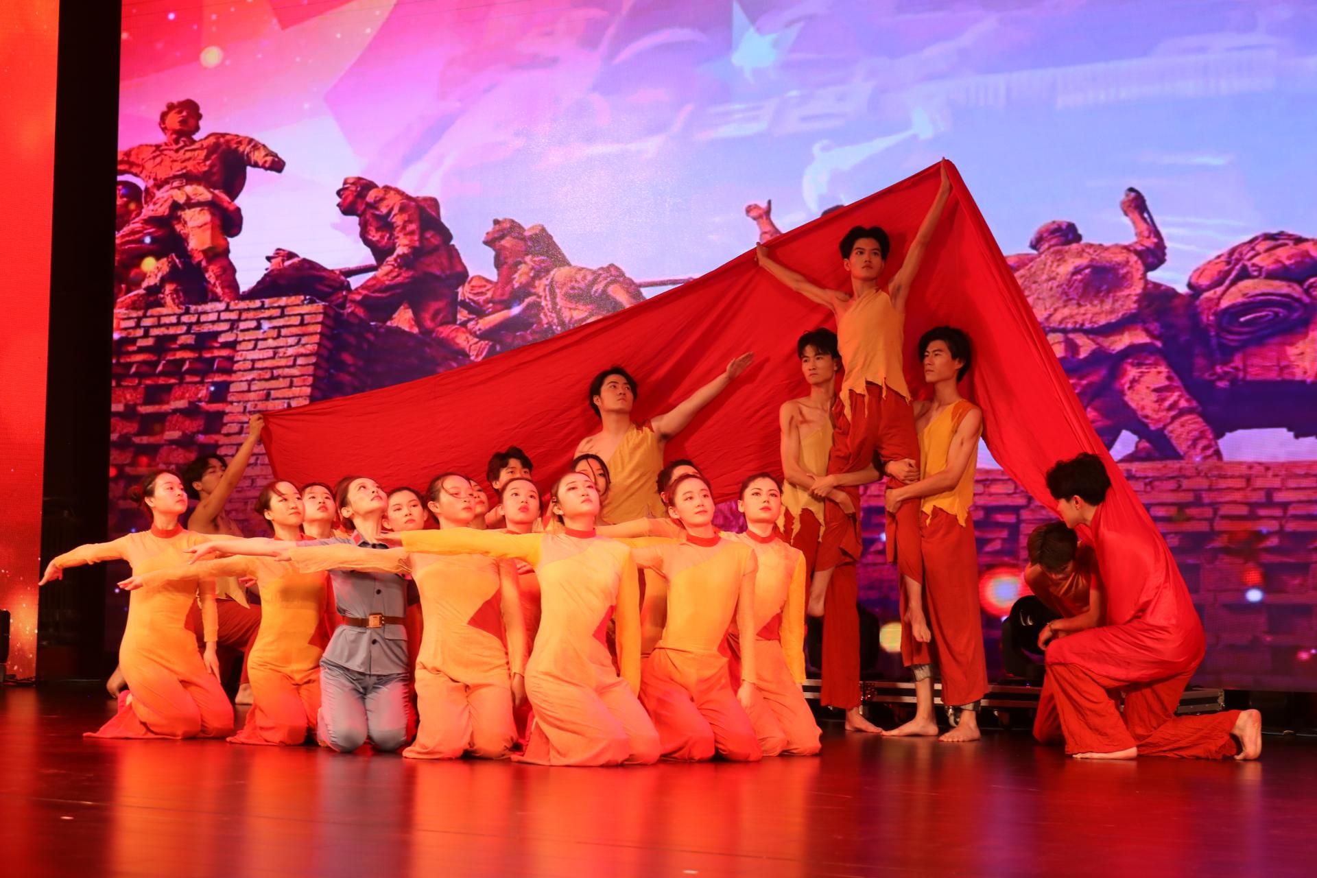 朗诵《信仰永恒》开启了第二篇章,用绵延的口吻思怀过去,用铿锵的话语展望未来,表现出新一代青年对党对祖国的深深热爱。在交响乐的映衬下,《红旗颂》随后上演,舞者们用悠扬的肢体语言歌颂了革命的红旗。歌曲联唱《唱支山歌给党听》《南泥湾》《走进新时代》《星辰大海》声声呼唤着师生心灵深处的红色记忆及印在血脉里的“红色精神”。气势恢宏的扇子舞《我的祖国》极具现场感染力,表达了浓烈的爱国主义情怀。