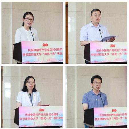 天津市优秀共产党员、马克思主义学院教师李欣,天津市优秀党务工作者、机械工程学院包装工程系教工党支部书记王怀文,天津市教育系统先进基层党组织、生物技术与食品科学学院党委书记武妮娜,学校先进基层党支部、理学院(基础课部)统计系党支部书记徐立分别作典型发言。