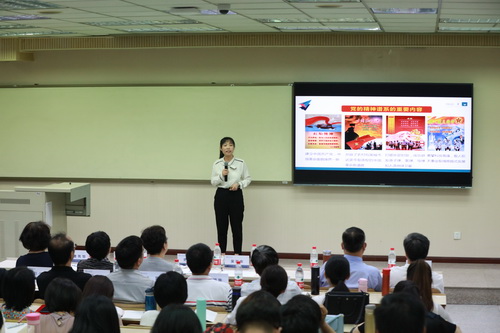 6月23日,学校在4教306举行“百年党史进课堂 思政课程育新人”党史学习教育融入思政课教学展示活动。校领导史习红、蒋宗文、吴海东、黄凤羽、陈冠益出席。党委宣传部、校工会、教务处、教学质量保障中心及派驻纪检监察组负责同志,马克思主义学院全体教师、研究生参加。