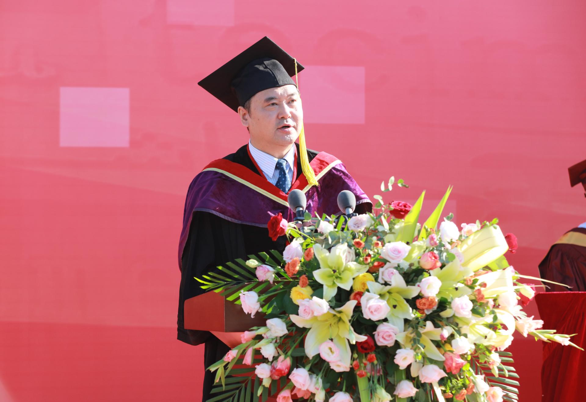 典礼上,校党委副书记、校长葛宝臻以毕业致辞的形式为毕业生上了大学最后一堂思政课。葛宝臻祝贺2021届毕业生圆满完成学业,并向辛勤培育同学们的家长、老师致以诚挚的谢意和崇高的敬意。他指出,今年的毕业典礼暨学位授予仪式恰逢中国共产党成立100周年,是值得永久铭记的荣耀时刻。他简要回顾了在中国共产党的领导下,我国在不同历史时期取得的辉煌成就,总结了四年来星空综合发展和学生个人成长等方面取得的优异成绩,号召广大毕业生牢记习近平总书记对青年的嘱托,从百年党史中汲取奋进力量,为实现中华民族伟大复兴的中国梦贡献智慧和力量。