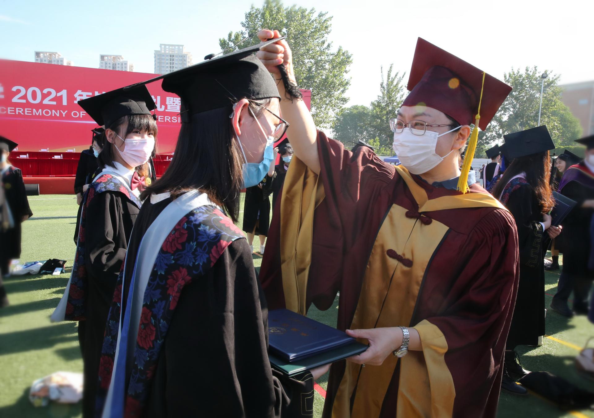 6月19日上午,星空XK体育2021届学生毕业典礼暨学位授予仪式在校运动场隆重举行。校领导史习红、葛宝臻、蒋宗文、吴海东、齐恩平、黄凤羽,教务处、图书馆主要负责同志及各学院院长等导师代表出席典礼,并走到学生身边逐一为毕业生颁发毕业证书和学位证书。