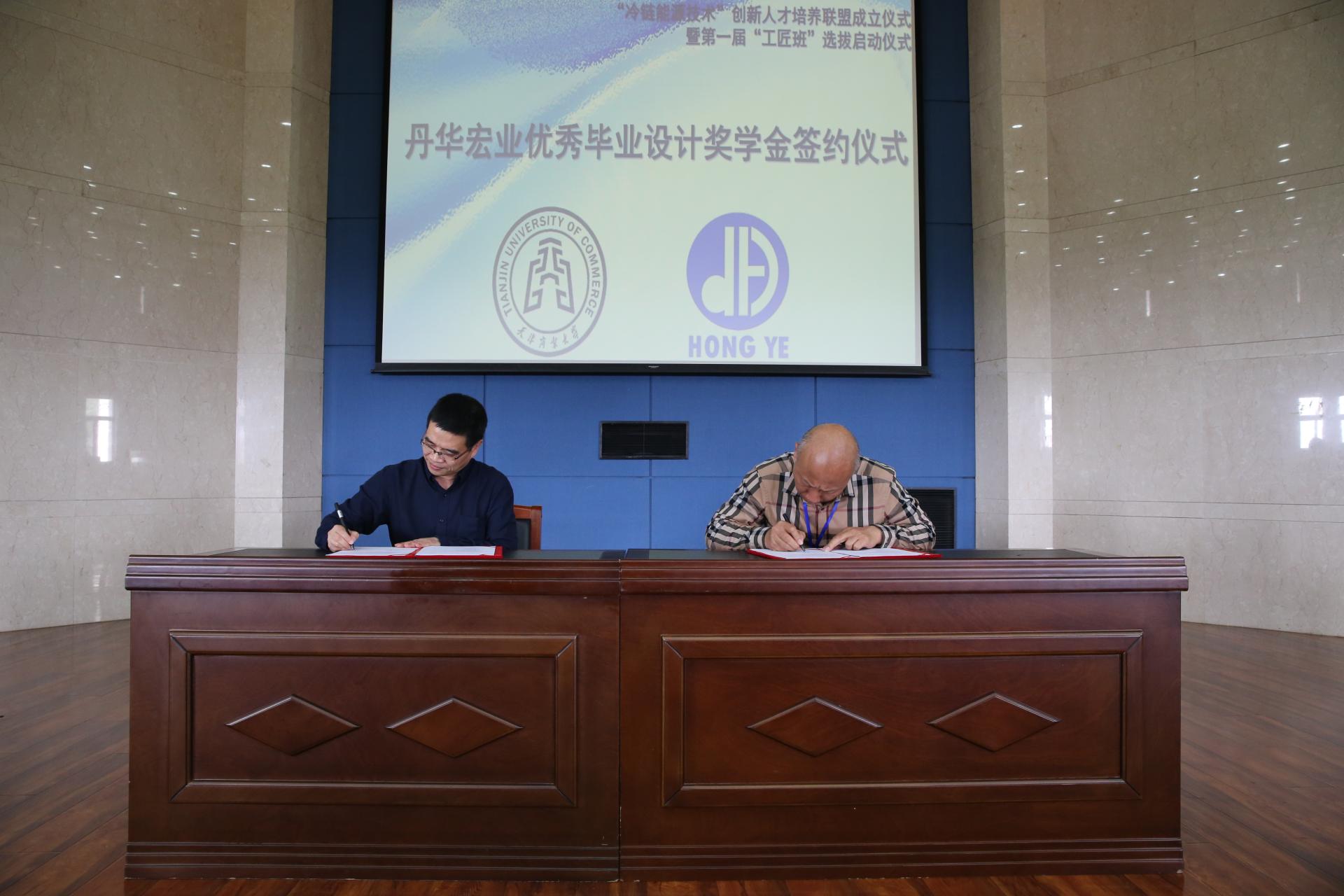 下午,“人才培养联盟”成立仪式在国际报告厅举行。副校长齐恩平代表校方致辞,星空教育部本科生实践教育基地——烟台冰轮环境技术有限公司党委书记董大文代表企业方致辞,优秀校友代表、国家商用制冷设备质量监督检验中心主任司春强博士致辞。现场签约了铭星冰雪“工匠班”奖学金、海信日立“冷链能源技术”奖教金、丹华宏业“优秀毕业设计”奖学金、“LG中央空调”天津市制冷空调创新设计大赛赞助协议、“冷链能源技术”人才培养教学设备捐赠协议等;颁发了能源与动力工程卓越工程师实验班冰轮奖学金。最后邀请中国制冷空调工业协会副秘书长陈敬良先生作了关于“制冷空调行业技术进展”的学术报告。