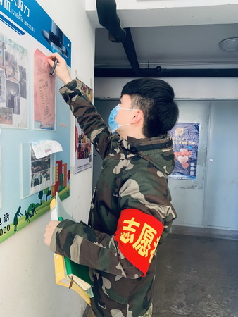 王彩云同学在家乡社区参与疫情防控志愿服务工作