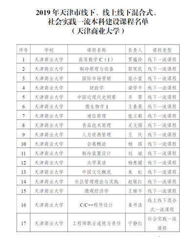 日前,天津市教育委员会下发《市教委关于公布2019年天津市级线下、线上线下混合式、社会实践一流本科建设课程名单的通知》(津高教函〔2020〕1号),星空《高等数学C(1)》《制冷原理与设备》《国际市场营销》等17门课程获批2019年天津市级线下、线上线下混合式、社会实践一流本科建设课程。