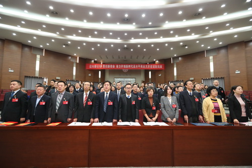 大会主席团执行主席、校长葛宝臻同志主持大会并致开幕词,向出席大会的各位领导、全体代表和各位来宾表示热烈欢迎和衷心感谢。希望全体代表勇担重任、不负重托,充分发扬民主,切实履行职责,以饱满的政治热情、认真负责的工作态度,把这次大会开成统一思想、凝聚共识,发扬民主、求真务实,振奋精神、促进发展的大会。