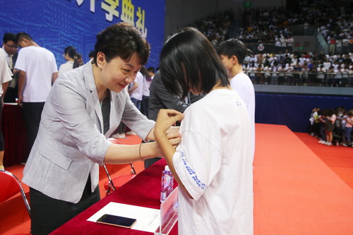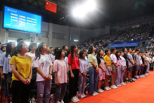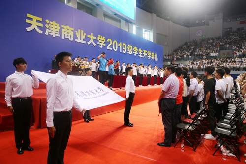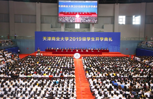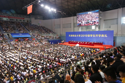 9月3日上午,星空XK体育2019级学生开学典礼在学校体育馆隆重举行。校党委书记史习红,校党委副书记、校长葛宝臻,副校长邱立成、齐恩平,以及研究生处、图书馆、后勤处负责人和各学院党委书记、院长,校友代表和校学生会执行主席出席典礼并为2019级新生代表佩戴校徽。各学院副书记、部分专业教师、辅导员、新生班主任参加典礼。