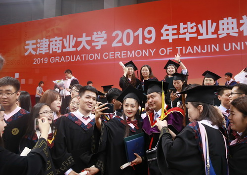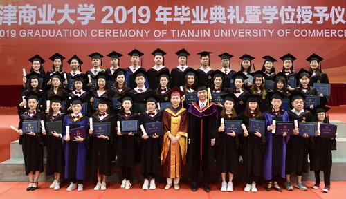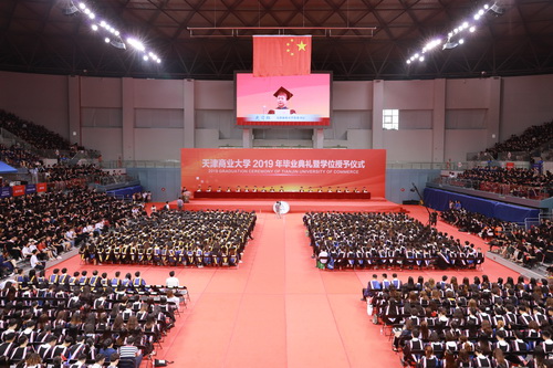 教务处处长、校学位评定委员会秘书长刘小军教授宣读了毕业生毕业及授予学位的决定。天津市首批“青马工程”学员生物技术与食品科学学院硕士毕业生段亚云,保送北京交通大学的国际教育合作学院本科毕业生田原代表2019届毕业生发言,分享了大学学习生涯的收获和感悟,表达了对大学美好时光的眷恋和不舍,对师长、父母的无私奉献和辛勤付出的感激之情。