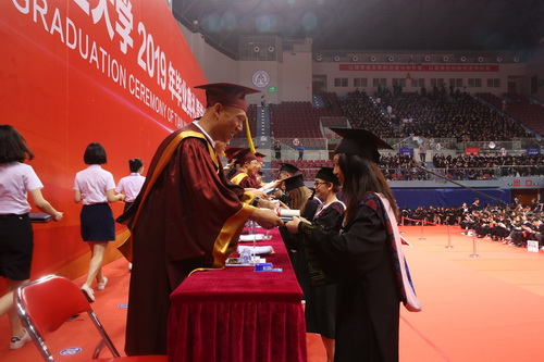 6月20日上午,星空XK体育2019届学生毕业典礼暨学位授予仪式在校体育馆隆重举行。校党委书记史习红,校党委副书记、校长葛宝臻,校党委副书记卫克武,教务处,研究生处,图书馆主要负责同志以及各学院院长等导师代表出席典礼并逐一为毕业生颁发毕业证书和学位证书。